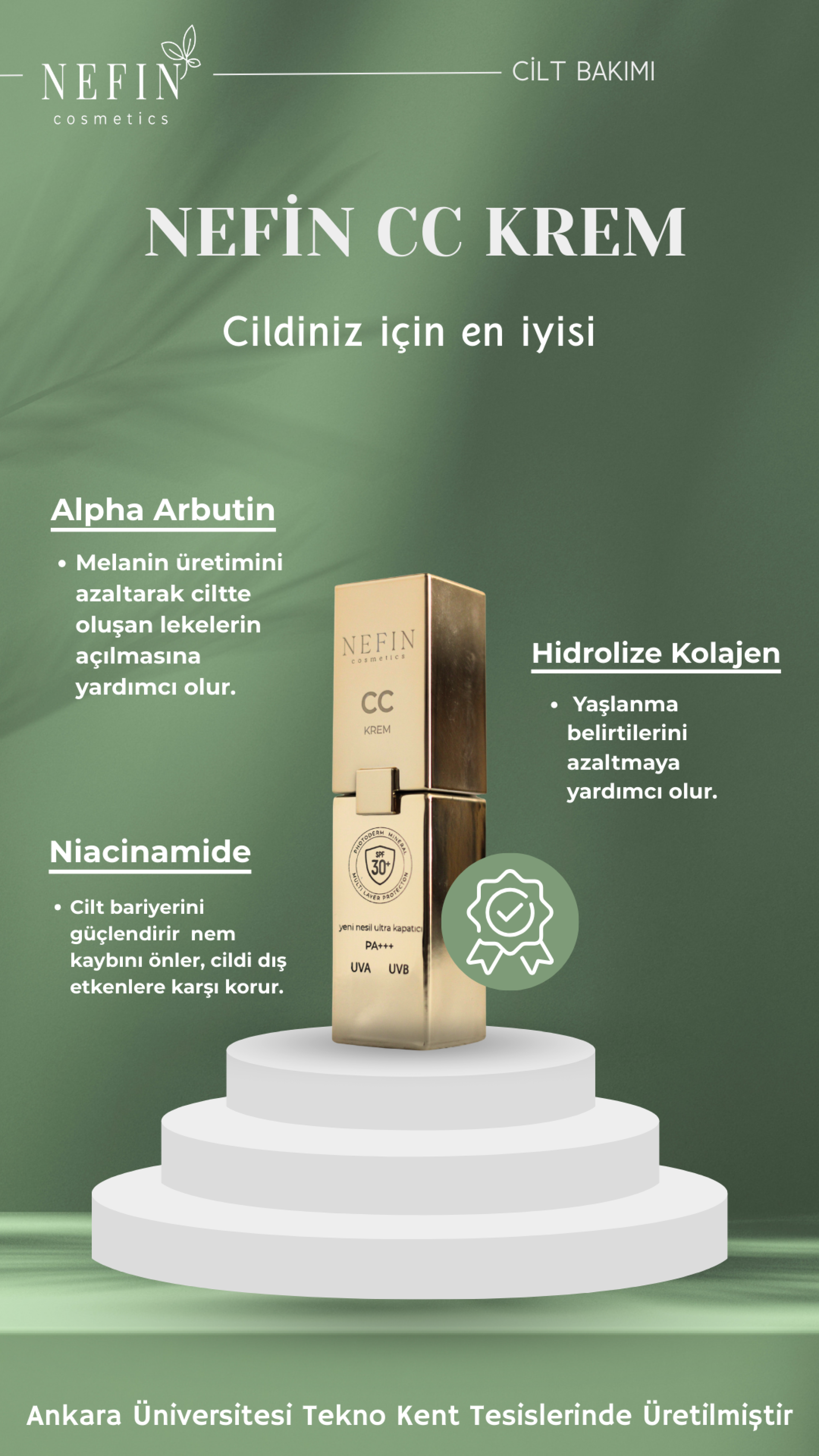 - Alpha Arbutin, Hidrolize Kolajen ve Niacinamide gibi değerli içerikleri sayesinde cildinizi besler ve onarır.